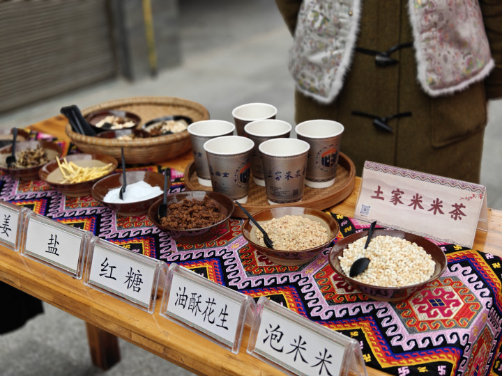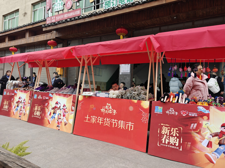 2月5日,桥头镇的土家年货节集市摆上了各类特色产品。