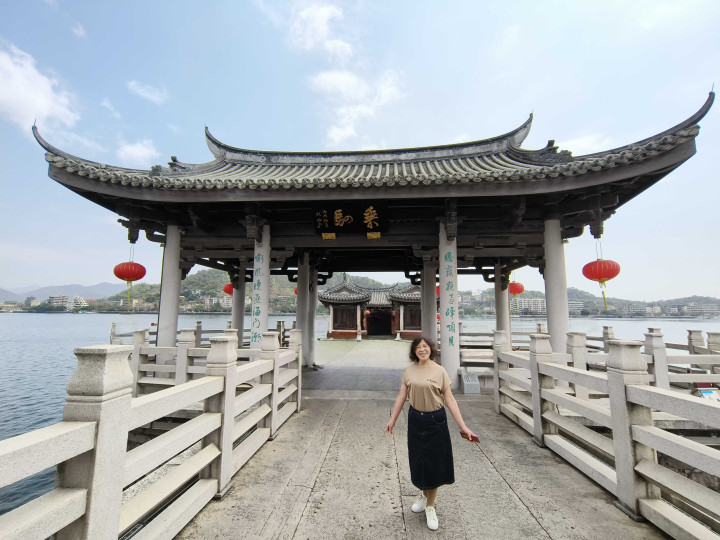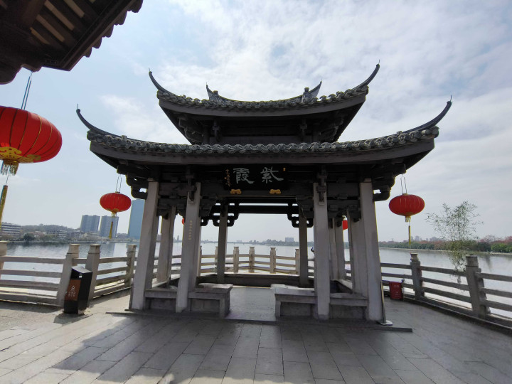 踏上对岸的石梁,心方才落回实处。迎面便是“右同楼阁”与“济川牌楼”,又是一番气象。