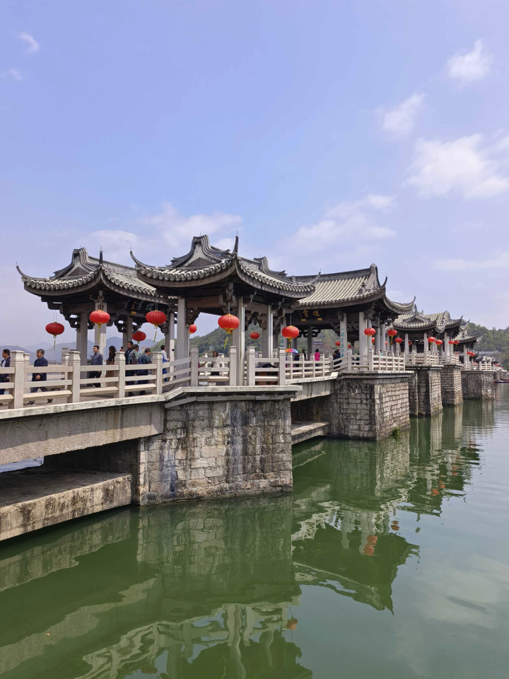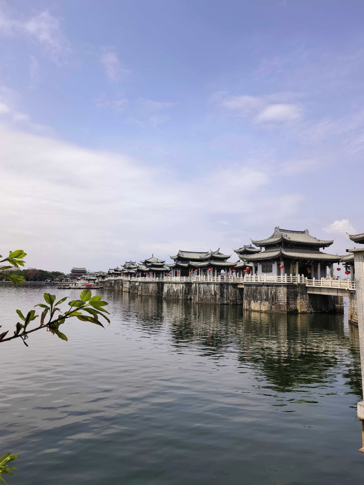 一端是坚硬的、永恒的石头世界,另一端是柔软的、随波浮沉的舟楫世界,竟这样毫无芥蒂地连在一处。一边是定,是千年不动的执拗;一边是流,是时刻在变的顺应。乾坤一线,竟真的在这一座桥上浮了出来。