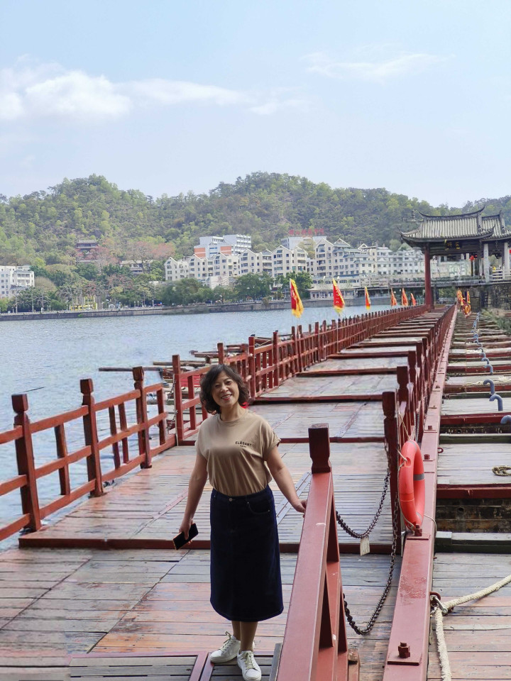 它们一艘连着一艘,被碗口粗的铁链串着,并非密密地挨着,中间留着些缝隙,可以看见底下黄浊的江水,汩汩地流过去。铁链绷得并不十分紧,于是这浮桥便有了生命,随着江水的呼吸,缓缓地、懒洋洋地起伏。人走上去,那起伏便成了清晰的波浪感,从脚心传上来,酥酥的,麻麻的,教人不由得放轻了步子,屏住了呼吸。