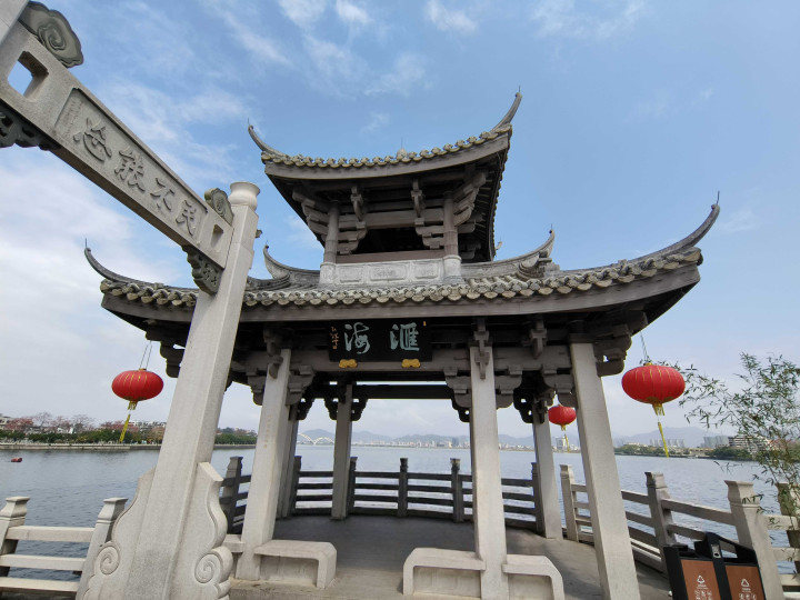一路行去,便跌进了一个亭阁的名字里。这些名字,一个个,都像是从旧诗词里直接剪下来的片羽,带着想象与期盼的重量。“奇观” 二字,干脆直接,道尽了造桥者与后来观者的心声,在这里,一切的形容似乎都成了多余。