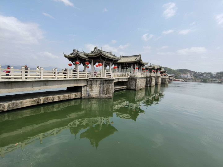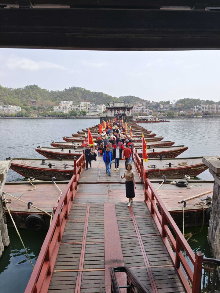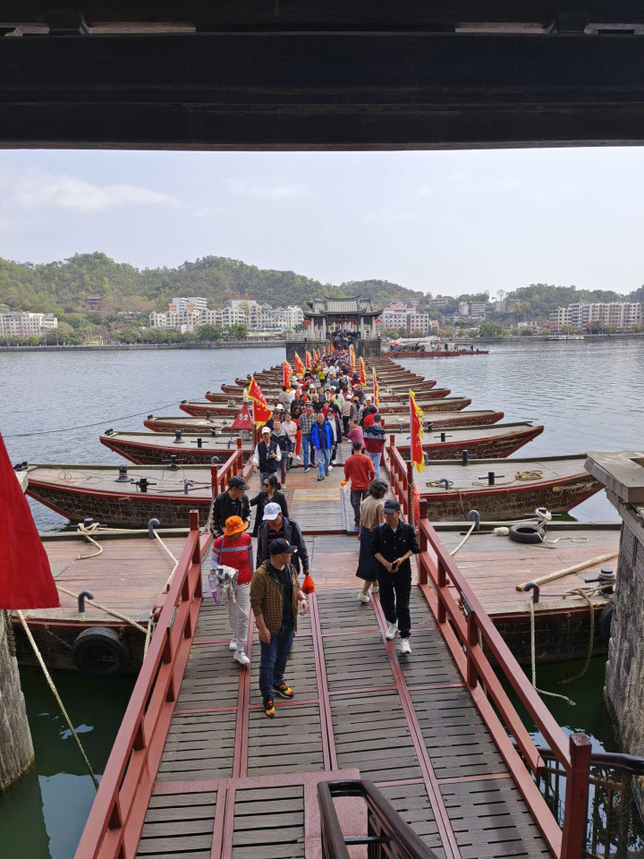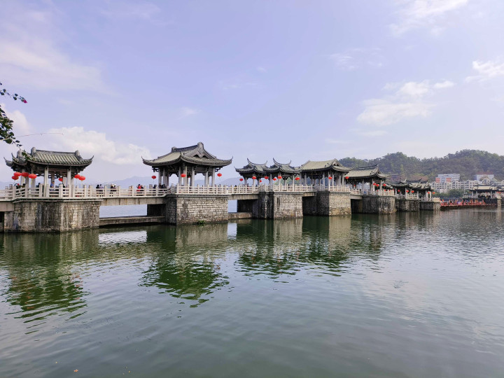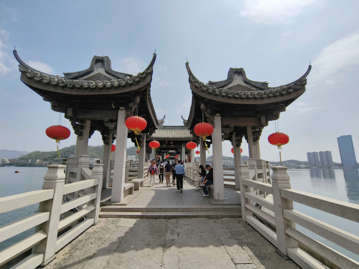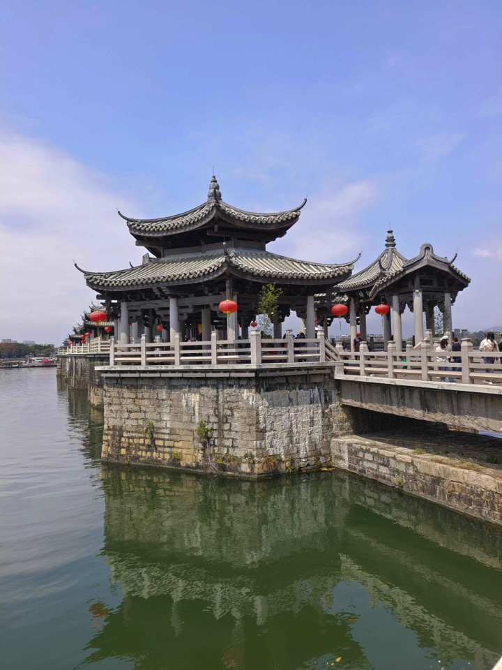 前望对岸,亦是亭阁绵延,却隔着这一段动荡的空白。人在此刻,才真切地感到自己是“渡江”,是悬在天地水流之间,那份安稳的凭依,竟维系于这十几艘随波起伏的旧木船与几根沉默的铁索。这份惊险与奇巧,怕是石桥的万般稳重也给不了的体验。然而,这恰恰是古人的大智慧所在——他们深知韩江“雨积江涨,则波急而岸远”的凶险,于是不强求“一桥飞架”,而是留下这灵动的缺口,让自然之力有宣泄的通道,也让巨舶有了通航的孔道。每日下午,浮桥会准时开启,那“过河拆桥”的奇观,是这座古桥与现代社会仍在进行的神奇对话。